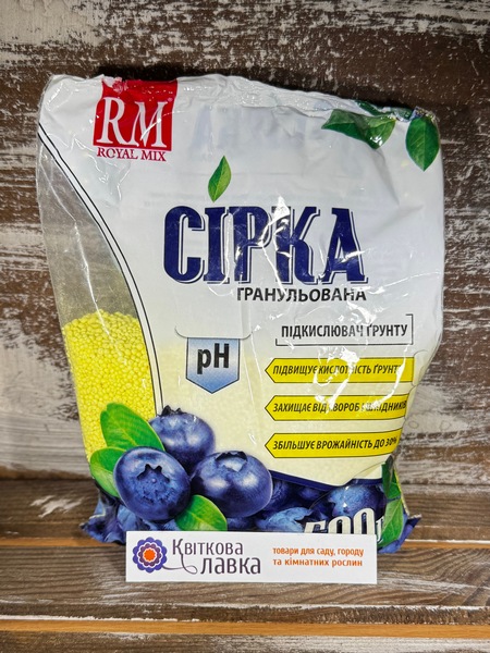 Сірка у гранулах, яка максимально та швидко засвоюється рослинами. Використовується для підкислення ґрунту при вирощуванні кислолюбних рослин (лохина, чорниця, брусниця, гортензія, вересові та інші), має фунгіцидну та акарицидну дії, робить рослини стійкими до несприятливих умов вирощування.