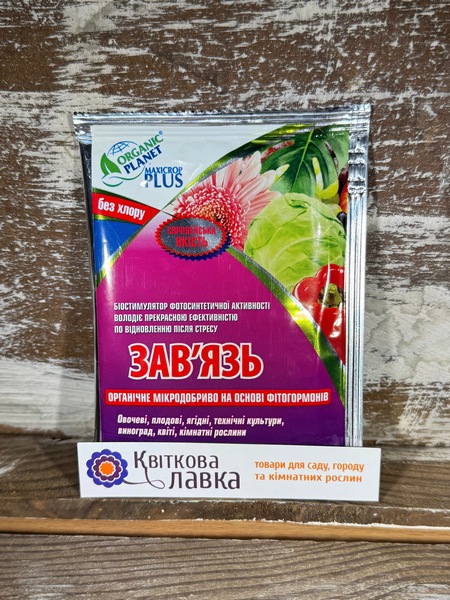 Стимулятор Зав'язь призначений для підвищення кількості зав'зі у плодових, овочевих, ягідних та декоративних культур. Препарат має в своєму складі готові фітогормони, які сприяють активному росту та розвитку рослини, підвищують імунітет і дають сили для цвітіня і плодоношення.