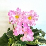 Махровые, светло-фиолетово-красные анютины глазки. Глубоко гофрированные края лепестков иногда украшены зеленой рюшью. Волнистая темно зеленая листва. Стандартная сенполия.