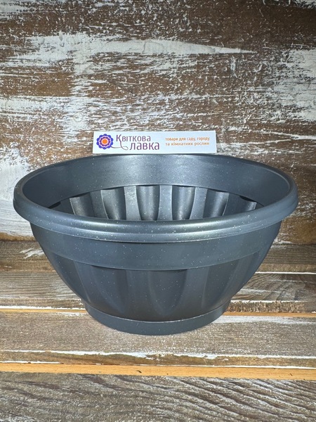 Горшок-плошка универсального использования. Выполнена из плотного пластика. Подставка прикреплена сразу к горшку. Верхний диаметр 16 см, нижний диаметр 7,5 см, высота 8 см. Отлично подходит для посадки нескольких растений, фиалок-трейлеров или растений с широкой корневой системой.