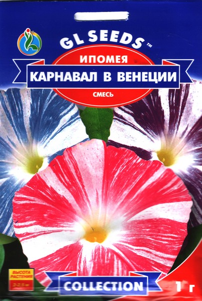 Эксклюзивная смесь уникальных окрасок. Ослепительно яркие, с неповторимыми штрихами цветки все лето покрывают лиану, создавая в саду ощущение праздника. Стебли длиной 2-2,5м, цветки роскошные, крупные, воронковидные, диаметром 10-12см. Предпочитает рыхлые и удобренные почвы, быстро растет, цветет обильно до октября. Хорошо подходит для оформления балконов, беседок, создания живых изгородей. Перед посевом семена рекомендовано замочить на 24 часа.