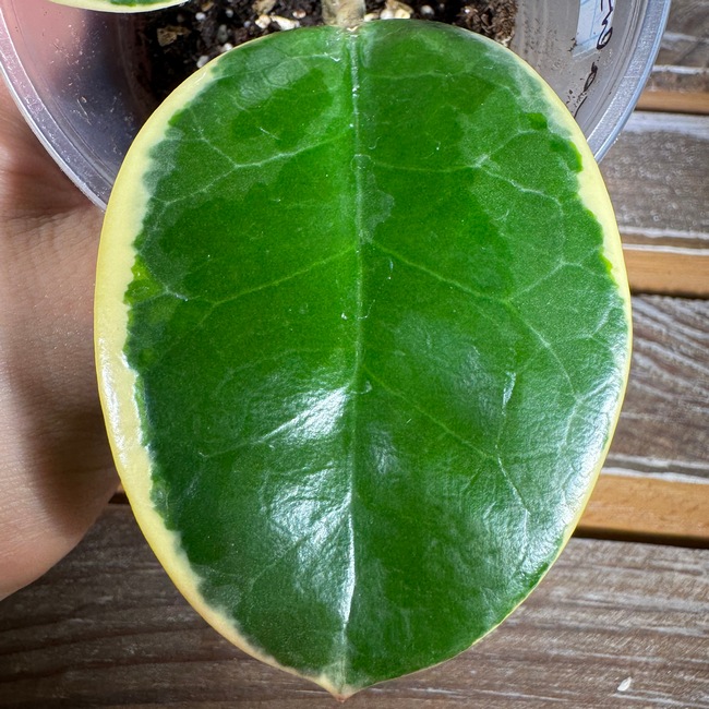 Різновид Hoya australis. Відрізняється біло-жовтою облямівкою по краю листочка. Характер зростання – ліана. На листі добре проглядаються жилки. Нові пагони та листочки на світлому місці можуть мати червоне забарвлення. Квітки мають діаметр близько 2 см. Віночок білий, часто з червоним центром, корона біла. У парасольках відкривається 20-40 квіток. Квітки тримаються близько тижня та випромінюють сильний пряний аромат.