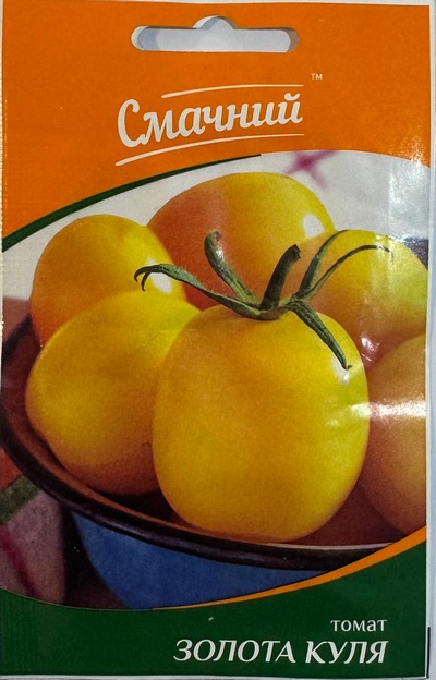 Індетермінантний (високий) сорт томату з пізнім терміном дозрівання (106-110 днів). Плоди масою 120-150 грам, яскраво-жовтого кольору, круглої форми, дуже солодкі. На китиці формується по 6-8 плодів, які можна збирати прямо гілочками. Окрім споживання в свіжому вигляді, сорт Золота Куля підходить і для консервування.