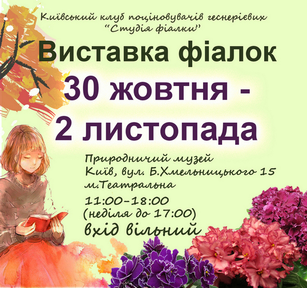 Запрошуємо всіх на Виставку Фіалок, яка відбудеться 30 жовтня-2 листопада в Національному природничому музеї (Київ, м. Театральна вул. Богдана Хмельницького 15). Будемо раді побачитись з кожним! До зустрічі!